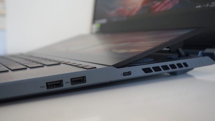 Or at least it would if the fans weren’t quite so noisy. I was hoping that the extra two fans tucked away under the secondary touchscreen might aid the Zephyrus Duo 15 in its efforts to keep cool under load, but alas, it would seem it’s just like every other gaming laptop in this respect: nice and quiet when idle, but a veritable jet engine when you’re doing anything more taxing.