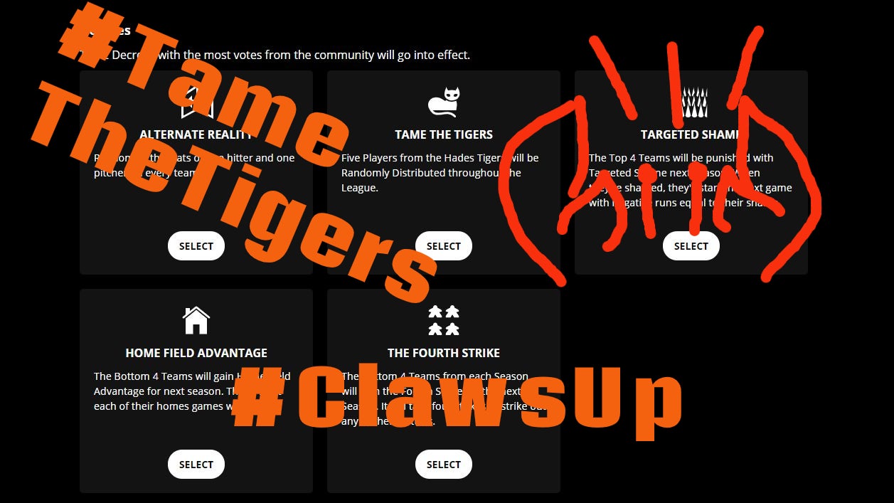 Blaseball-specific memes have already arisen. Players can switch teams randomly in the middle of a season due to ‘feedback’ occurring during a game. Whenever a new player joins the Crabs, the call is “I’m the crab guy”. I am not sure when or how many of these things started. It’s sort of like deciding to start watching Eastendersnowwithout any context, or joyfully leaping into a broiling mess of salmon swimming up stream, except the salmon are all crabs and now I am a crab and we’re all yelling “Claws up for trans rights!”