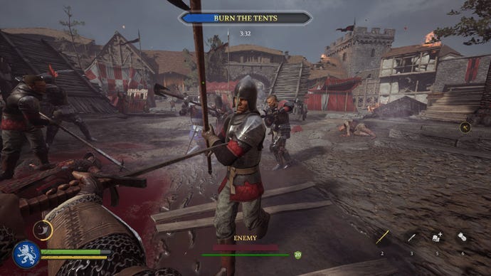 As a result, the barrier to entry is refreshingly low. I much prefer the combat here to that ofMordhau, for instance, where the sword clinking always felt hard to read. I like Mordhau but here things are much more lenient. Maybe there are more icons, maybe the clarity of the sound effects and little sparks make it feel more solid, more beginner-friendly. Or maybe it’s simply that everyone seems to have a bit more health, and strikes don’t demand so much precision. In Mordhau I would often swing and wonder “why did that miss?” as my head rolled ‘pon a carpet of mashed gore. But in Chivalry 2 even I, the village oaf, can riposte blows from several attackers and hold them off long enough to get one or two kills. Something about this war feels friendlier, more approachable and sympathetic, like a nice grandad. Yes, I realise I am talking about decapitating people.