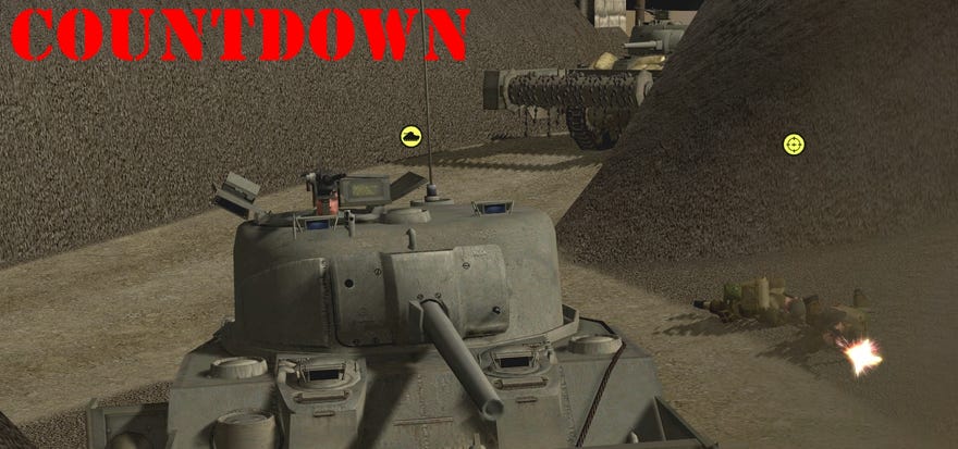 With no LoS to the Sd.Kfz, Crabmeat 2 does what she can to assist the Italians. She eliminates the enemy grunt near the westernmost sandbag wall with a well-aimed 75mm HE shell.