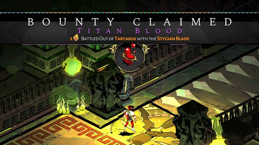 So, if you want to earn Titan Blood quickly, you’ll need to get good at defeating bosses (our mainHades strategy guidecan help with this!), and then you’ll need to keep switching weapons and upping the Heat Gauge between runs, so as to keep earning Bounty rewards with each new run.