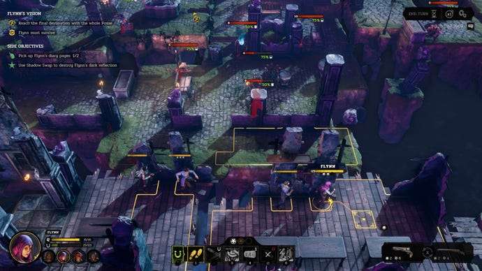 Combined, all this lets you perform some elaborate manoeuvres, such as swapping Flynn with an enemy in such a way that Gin can pepper three foes at once with bullets, before Laughing Deer rolls in to execute them all. But the complexity of the combat system also make battlefields hard to read. For example, certain enemies can trickshot too, which makes it difficult to know when a piece of cover will actually provide protection. Buildings and elevation also affect visibility and shot change in ways that aren’t always clear.