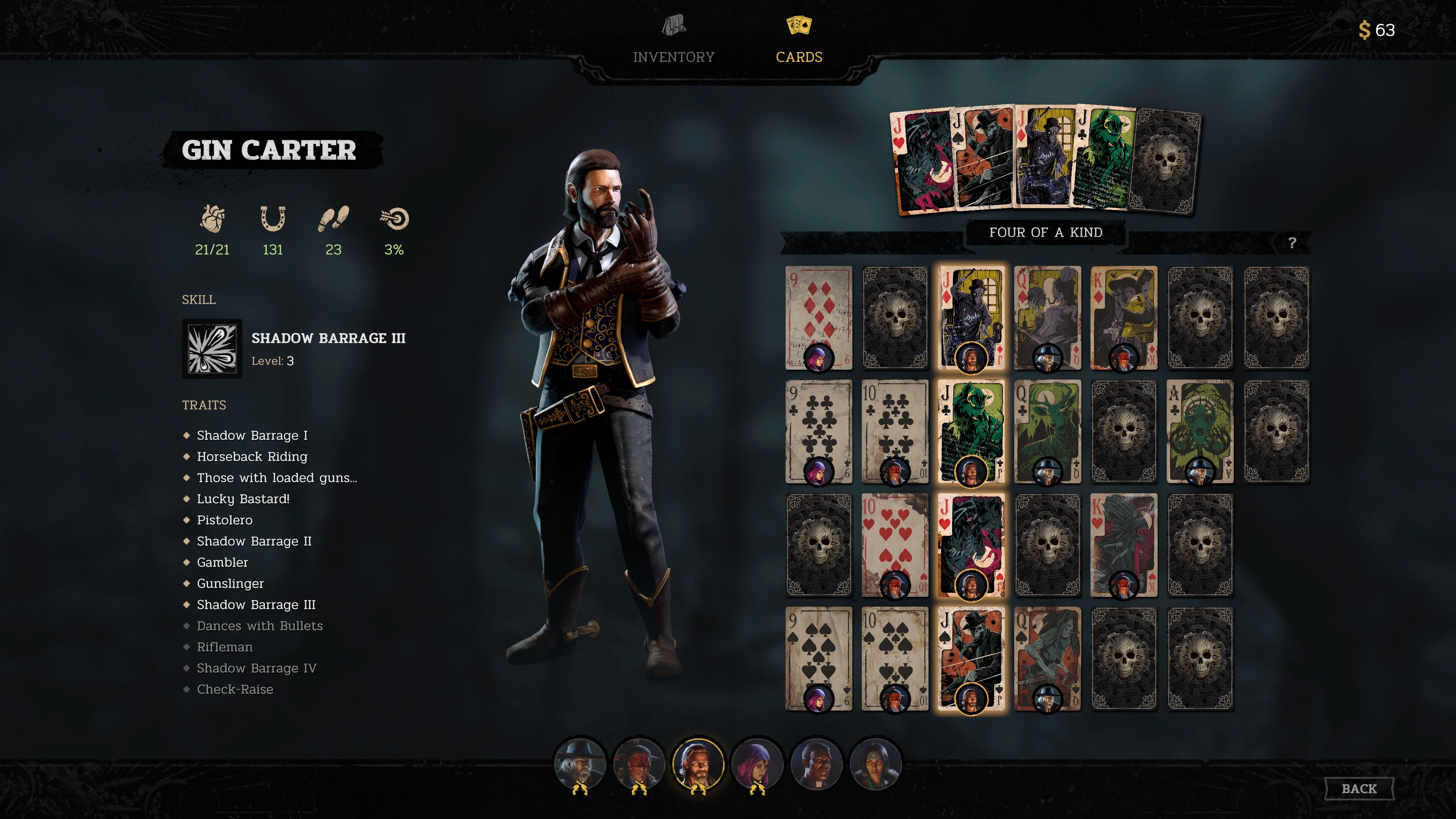 Considering the precision Hard West 2 often demands, such problems can make the game intensely frustrating. But they become less acute as you push deeper into the game, and your characters net a few upgrades that let them trigger Bravado more easily. Speaking of upgrades, Hard West 2’s character progression system is one of the most intriguing I’ve encountered all year. Instead of slotting points into a traditional skill-tree, each character can be equipped with a poker hand of up to five playing cards that are collected in every mission. The strength of this hand denotes the number of bonuses your character unlocks. Not only is this thematically fitting, it also lets you experiment with different builds, swapping cards around depending on who you want to take into a mission with you.