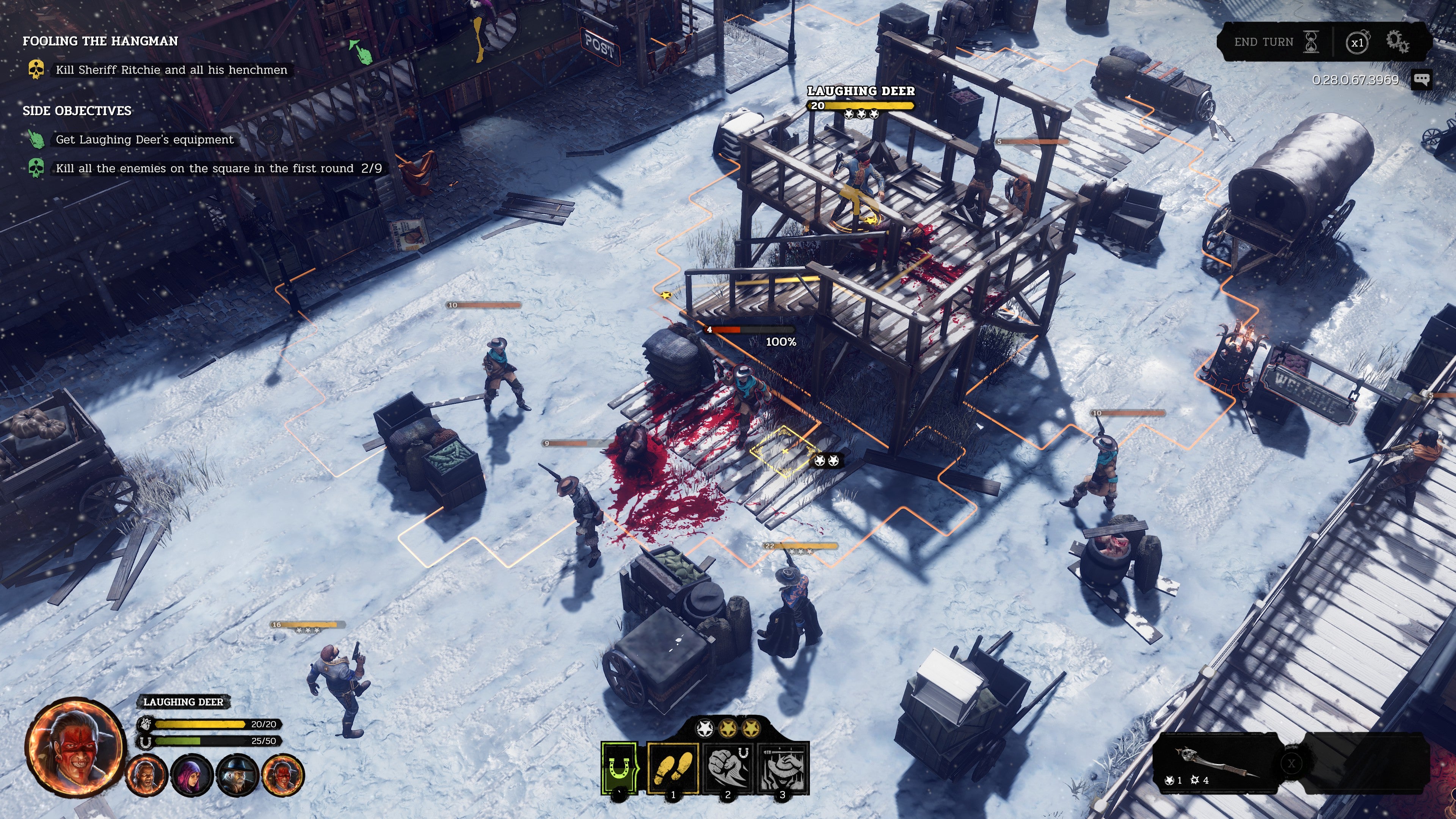 Ice Code Games may have called itHard West 2, but ‘round these parts we refer to it as “The Laughing Deer Show”. New to town, are ya? Let me clue you in. Laughing Deer is a six-foot man of raw muscle and rage, a native American warrior with shoulders like a pair of yoked oxen and a personality best described as “barely contained”. Unlike the rest of his posse, which includes a cowboy without a shadow, a woman with ties to the occult, and one very stubborn corpse, Laughing Deer doesn’t really “do” guns. While his compatriots are all crouched behind crates, ricocheting bullets off buckets and wheelbarrows to hit enemies from behind, Laughing Deer is getting in their faces (shortly before his club gets significantly further into their faces).