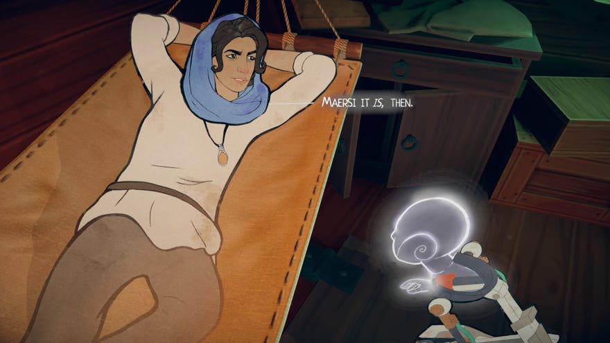 They’re one of PC’s great detective duos, but it’s the game’s focus on language and translation that really gets the old grey cells a-whirrin'. You begin with an almost comically small vocabulary of what these weird, squiggly hieroglyphs might mean in Heaven’s Vault, and a lot of your early translations may only let you decipher a single word or phrase. But gradually you start to see fragments of those familiar patterns emerge elsewhere, hinting at alternative meanings and interpretations, until eventually you’re constructing entire sentences with your newfound fluency. It’s a satisfying feeling, this sense of proficiency, and the best thing about it is there’s rarely a wrong answer - or at least not one that would get you a big red cross on your Nebulan language exam, anyway.