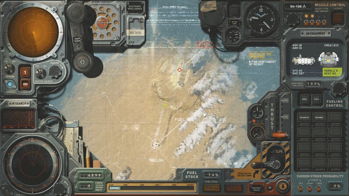 Repetition and a lack of delegation is a big one. On the main map screen, you must use little rulers and pencils to make notes, which starts out cute but soon becomes a chore, especially when you realise your crew can apparently programme the map to show enemy flight plans when you capture an intel station, but not when you decipher a transmission. No, you have to do thosemanually. You’ll accidentally zoom the map into random spots while trying to turn a radio dial. Messages you’re decrypting will force themselves into the darkest corner of the screen, where they’re difficult to read (as is the infra-red ship detection readout, which is so heavily obscured that I can’t even tell when it’s doing anything), and the map itself will flicker and warp. Why can’t I delegate any of this? I’m the admiral/prince, can I really not hire a map guy?