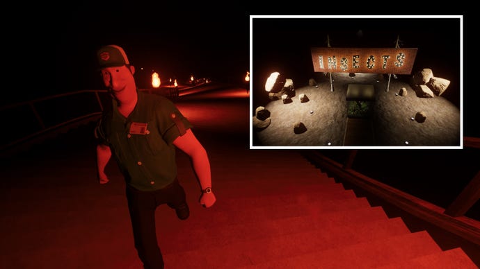This eerily merry security guard is the only person I’ve ever seen traversing the lonely road to the bowels of the earth. Inset: a picture of the treasures which lie in wait at the bottom.