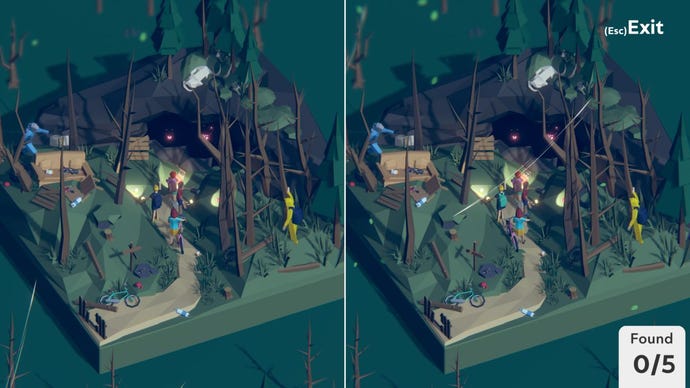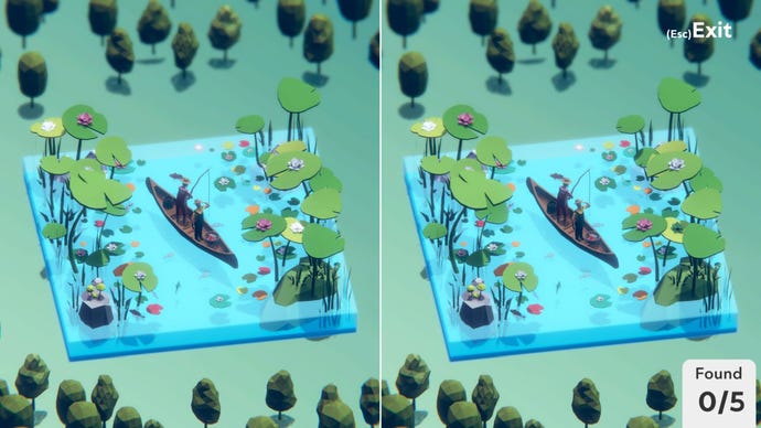 Tiny Lands is a 3D spot-the-difference game (onSteamnow) where you’re spotting differences in a little snapshot of a world: a campsite where someone is in the middle of a barbecue, or a terrible portal to another world as a battle between good and evil is in mid sway. Or a quiet fishing trip. Potato, potato.