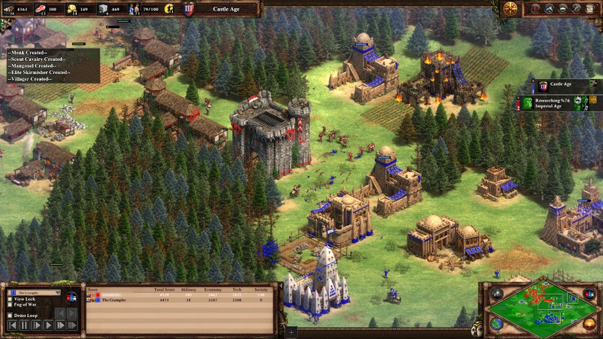 If you’re not familiar, AoE2 is a fast-ish strategy game where you become a medieval king and beast your foes with the metaphorical willy that is your army. To grow your willy, you have to build up a resource-gathering infrastructure, not just to build troops with, but to afford progression into four increasingly expensive “ages” (dark, feudal, castle and imperial), which each offer better upgrades. I’d always known that to win in a competitive 1v1, there’s a strict build order that you must adhere to, with rigid timings, if you’re going to stand a fighting chance. You also need to memorise a lot of hotkeys, and practise unit micromanagement. This had always seemed joyless and uncreative - like it robbed the game of any whimsy or fun. But after a bit of mucking around with the game’s Art Of War trainer, which teaches you to do this stuff against AI opponents, I suddenly saw not just the appeal, but also how quickly I could pick it all up. I resolved, for the first time in my life, to become Good at a game. And last night, after a few weeks of practising on non-frightening computers, I finally worked up the nerve to embark on my first, ranked, 1v1 game. Here’s what happened.