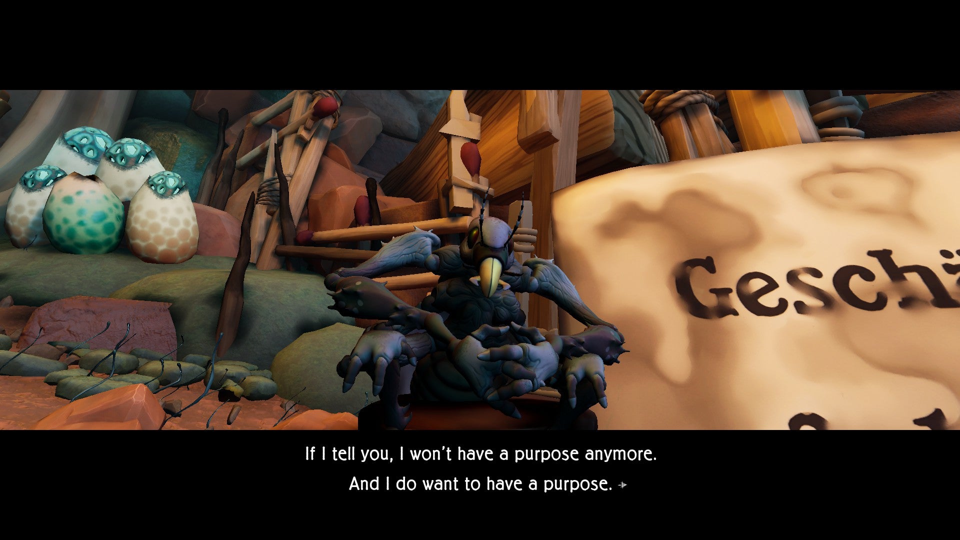 It’s about time to wrap up and I’ve realised I haven’t really said anything bad about it. Well, there was a minor bug with a line of text repeating, and I had a couple of crashes. The humans are not amazingly animated either, but then they work better as muffled voices and sunlight-obscuring, dust-shaking footsteps from beneath the floorboards anyway. Metamorphosis is a colourful, surprisingly charming wee adventure, and I’d love to see what else this studio can do.