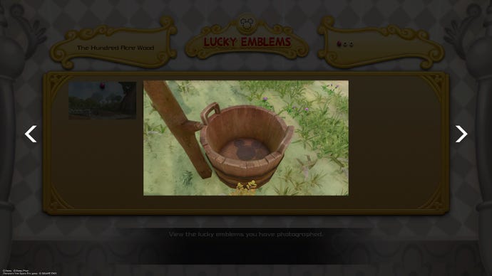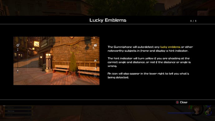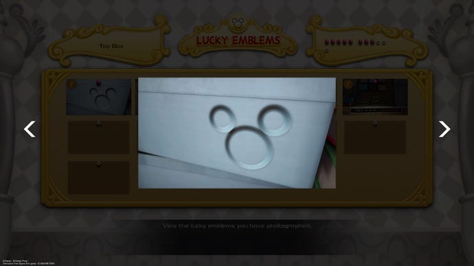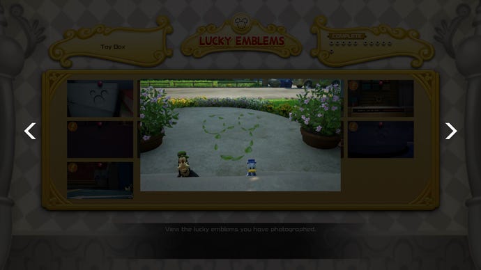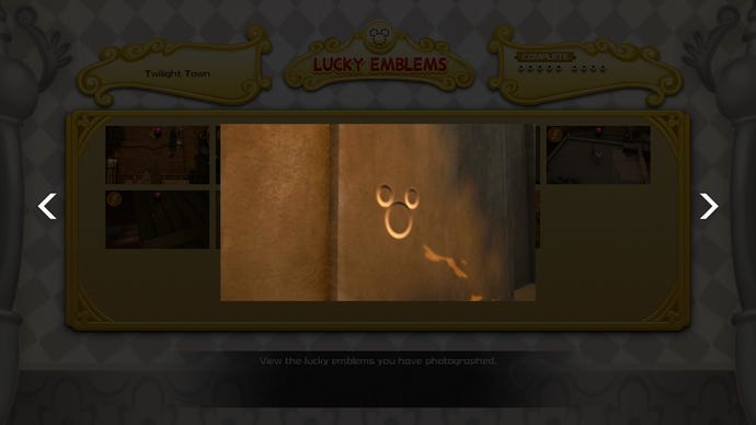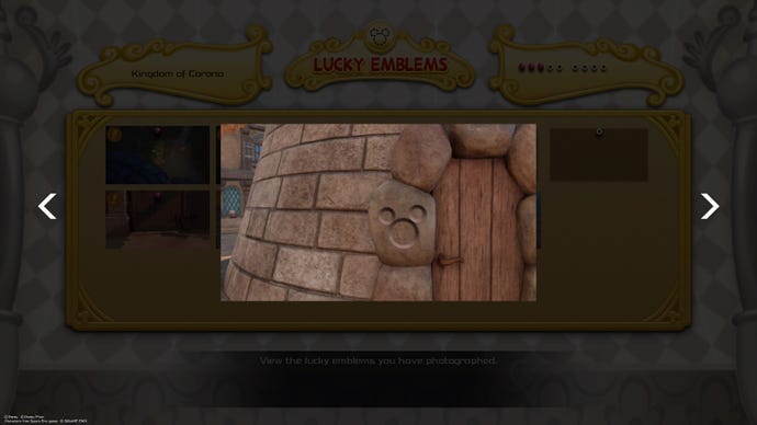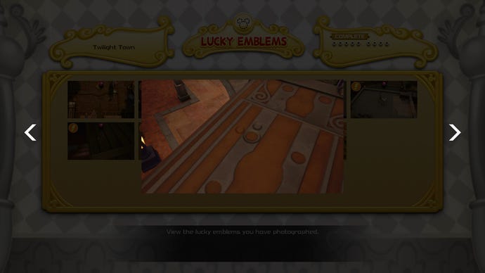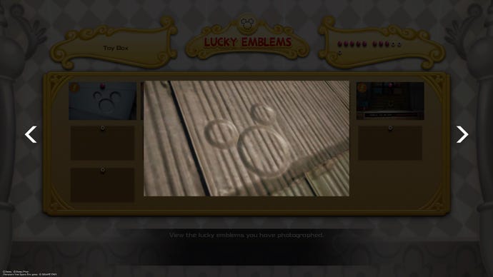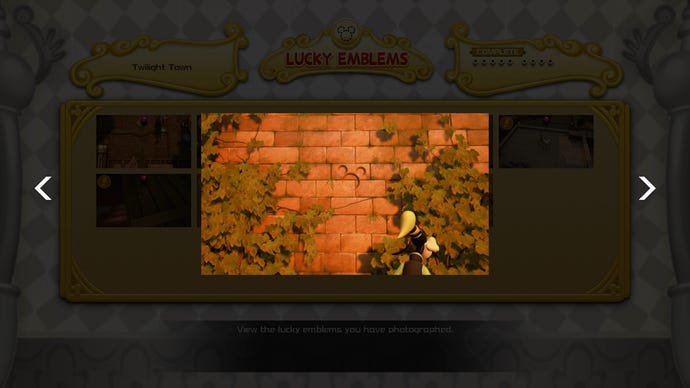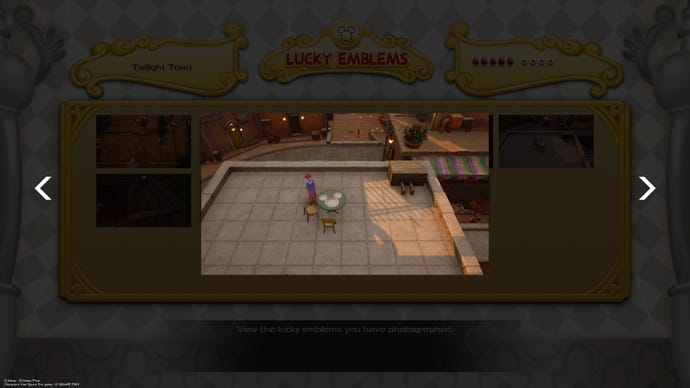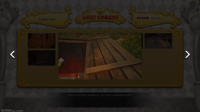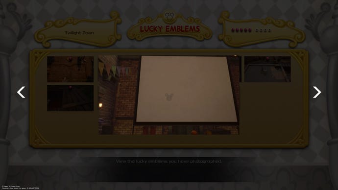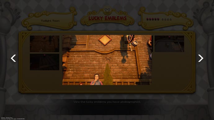 Lucky Emblems are introduced after you get the Gummiphone in Twilight Town. There are still lucky Emblems in the areas before this, though you will need to double back to get them. To collect them, you just need to take a photo of them using your Gummiphone. Press the touchpad on PS4, or the Change View button on Xbox One. As you can see in the image below, there will be a box around the emblem, which will turn yellow once you’re at the right angle. If the indicator is red, this means you are not at the correct angle. Once it’s lined up, take the photo, and earn your reward.