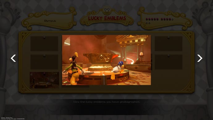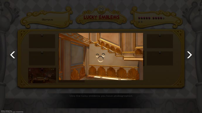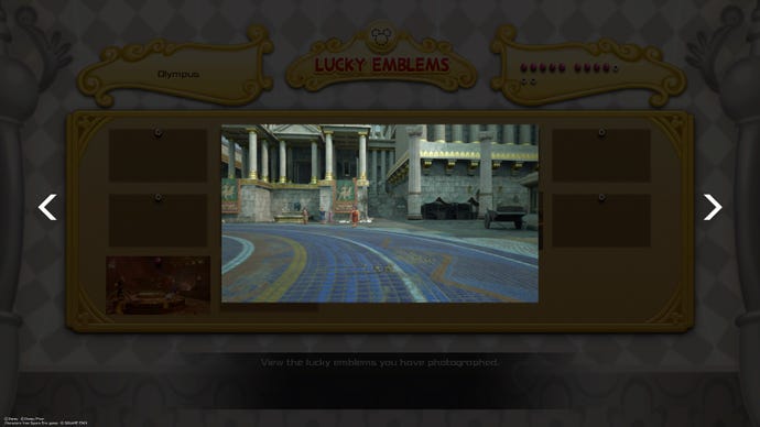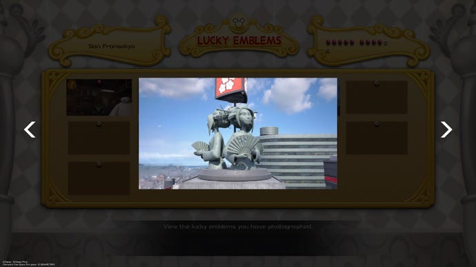 Lucky EmblemsOlympus Lucky Emblem LocationsTwilight Town Lucky EmblemsKingdom Hearts 3 Toy Box Lucky Emblem LocationsKingdom of Corona Lucky EmblemsMonstropolis Lucky EmblemsArendelle Lucky Emblem Locations100 Acre Woods Lucky Emblem GuidesSan FransokyoPirates of the Caribbean Lucky Emblem LocationsWhat Do You Get For Collecting All of the Lucky Emblems?