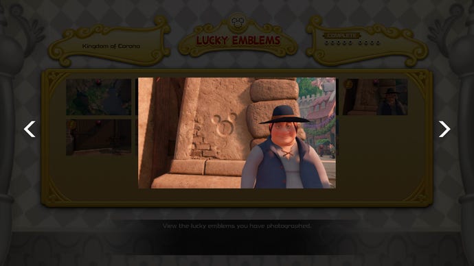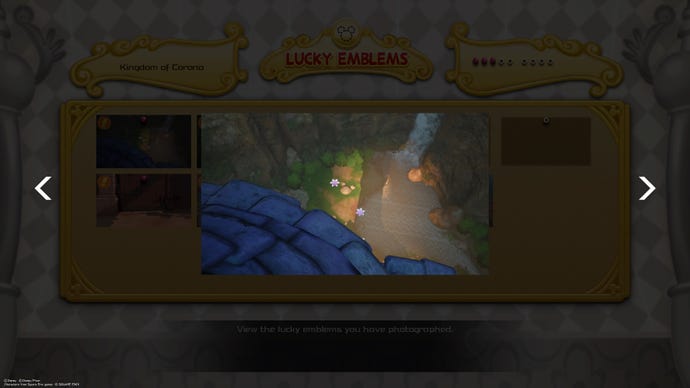 Now we’re off to Tangled world. We found a fair few Lucky Emblems in Kingdom of Corona, though there are definitely more to be found. We’ve listed them below and will update as we find them. The first Tangled Lucky Emblem can be seen from the top of Rapunzel’s Tower.