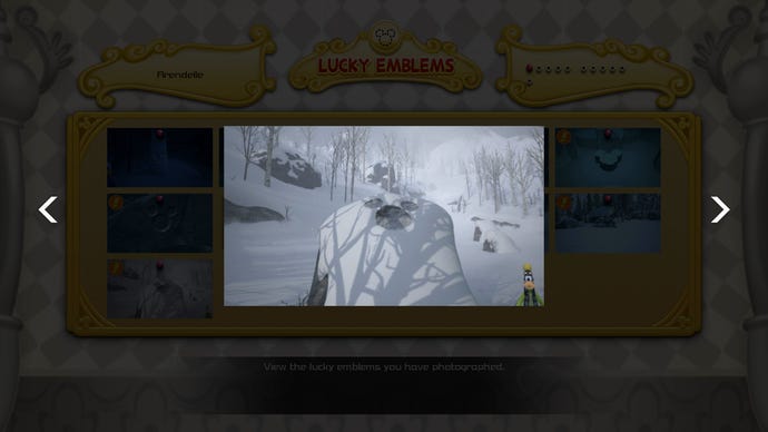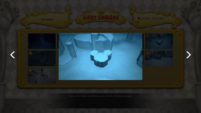 This Lucky Emblem is incredibly high up. When you’re on your way to the Ice Palace, you’ll see a Mickey head from the tip top of a snowy rock.