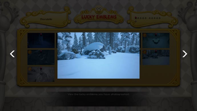 This Lucky Emblem is in the Snowfield where you fought the Snowbeast. It’s hidden in the logs.