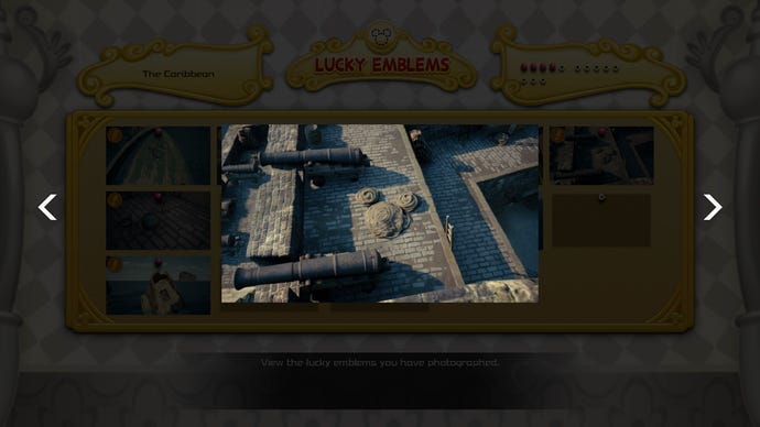Finally we have The Caribbean, a pirate adventure with some very familiar faces. The first Lucky Emblem we found is on the Port Royal. Under a shed, there are some boxes with a light shining on it.