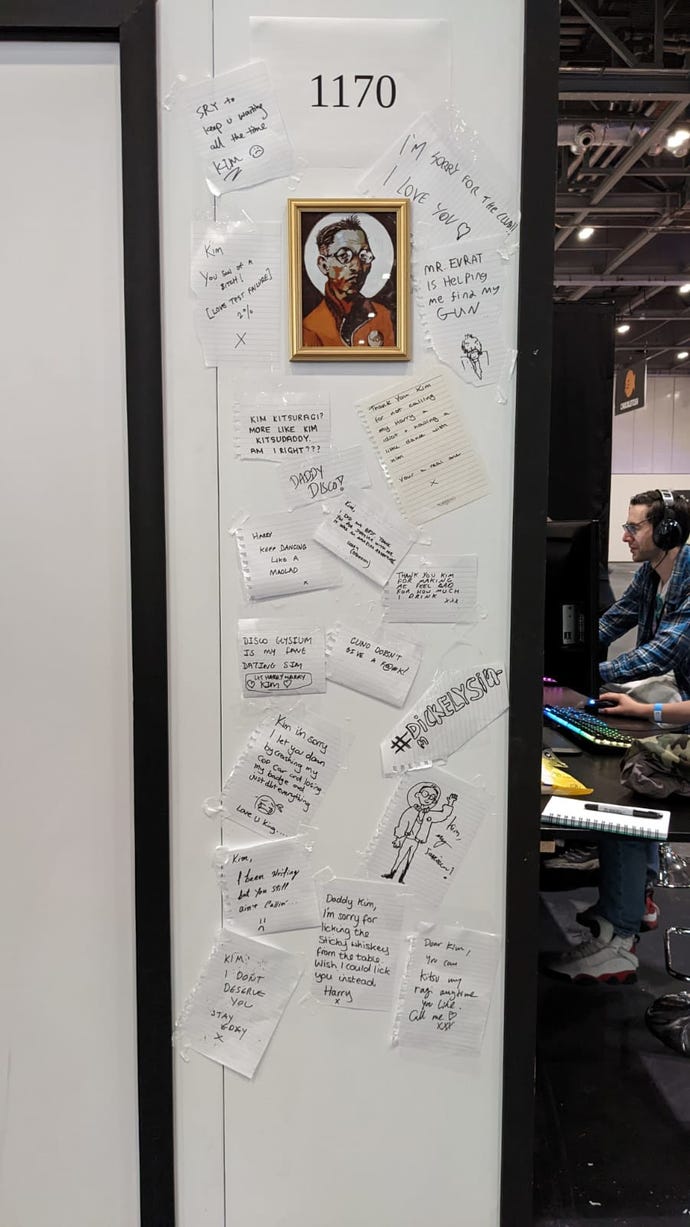 A shrine to Kim is rapidly forming on theDisco Elysiumbooth: