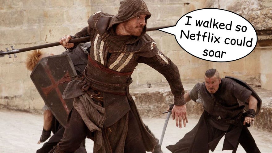 I’m dead serious, on both counts. Netflix’s NX Twitter account justTwote out a little teaserfor a live action Assassin’s Creed Netflix Original Series. Right now there’s no date, no hint at the setting, and no actors attached. It is a few bars of that musical sting we all love, and the AssCreed logo with an N in it.Watch on YouTubeNX is “Netflix’s home of all things geek”, and it basically just highlights all the sci-fi and fantasy stuff that fans of Swedish thrillers will turn their noses up at. In afollow up tweet, NX confirmed that Netflix “will be developing an Assassin’s Creed live-action series” with Ubi’s Jason Altman and Danielle Kreinik of Ubisoft Film & Television on board as executive producers. I’d say their LinkedIns are lighting up right now. They’re about to get one of those emails going “Your profile is getting noticed”.Ubisoft Film & Television used to be Ubisoft Motion Pictures, the division that brought us 2016’s Assassin’s Creed movie, starring Michael Fassbender and Marion Cotillard. And I am convinced that Netflix should make their TV show a sequel to it.Now, the AC film was a terrible film, on many levels. Conceded. For some reason, the bit that really stuck with me was the sound editing. Like, where Fassbender does the big leap of faith stunt, for some reason the movie cut in a dramatic BWAHHHH when he was half way down. Not when he landed, not when he took the actual leap. In the middle. BWAAAAAH I’M FALLING BWAAAAAH. Anyway.The thing is, it wasn’t devoid of good ideas. Having Brendan Gleeson in your film: always a good idea. I liked the way it did the Animus as a big Cirque Du Soleil robot arm that flung Fassbender around like a parkour test dummy. Setting up Cotillard’s character as a conflicted baddie for the sequels they hoped for but never happened was also good, as was the (brief) appearance of some cool assassins of yore who would be good supporting characters or flashback types. The film laid some solid foundations, it’s just the first thing built on it was a bit of a tower of shite.But isn’t the joke about Ubisoft that the second thing they make in a series is always way better than the first? And Netflix have a very good track record with video game stuff, including theirCastlevania animeandThe Witcher TV series, both of which I judge to be good.Here we see a Fassbot running the StandardCombatYell6.exeImagine: the series picks up after the events of the film, with the Assassin’s fleeing to hide the apple they just murder-stole from the Templars. The series is about the two teams kicking it back and forth like a football, while the events of the games are just, you know, happening somewhere else, who cares. Like Agents of Shield! But with stabbing! Plus, your team of assassins could each have a historical assassins counterpart for confusing timetravel-but-not-really fun à la Westworld!Unfortunately I think the in-game lore might have delicately stepped over and around the film a bit, but nobody pays that much attention to it anyway. I say, be bold. Go with the Assassin’s Creed: The Movie: The Extended Universe. I do also think Fassbender should be roped back and chained to the franchise wheel for a bit, as penance for looking so godammn bored through the whole film. But that is kind of a personal gripe.Anyway, that’s all we know for now. Further bulletins as events warrant? This is all in the ramp up to the release ofAssassin’s Creed Valhalla, a viking flavoured assventure out on November 10th.