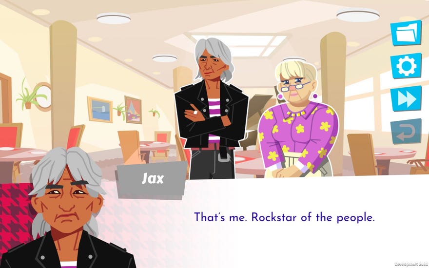 Getting older doesn’t mean you need to hang up your dating game. We’ve all seen Golden Girls, right? (Disclosure: I have not seen Golden Girls. Is it sexy?) New dating simLater Daterswalks you through the uncertain waters of post-80 dating with a bit of warmth and a bit of humor, just as the doctor ordered.You playLater Datersas the newest resident of Ye OLDE retirement community after having vertigo and a bad fall, prompting your doctor to recommend that living on your own out in the country isn’t so safe. “Later Daters makes the bold claim that adventure, passion, and transformation are not experiences reserved for the young,” say Bloom Digital Media.To see this content please enable targeting cookies.Manage cookie settingsI’m totally here for another slightly unexpected dating sim scenario—as we’ve already tackleddads,birds, and soonpets. It looks like there will be an element of silliness, what with Later Daters' slogan “if the chairs are a-rockin', don’t come a-knockin'.“There’s probably a bit of bitter-sweetness too. You’ll choose your face, name, and pronouns are you’re wont to do in dating sims but you’ll also choose your romantic history. Based onLater Daters' trailerup above, it looks like your protagonist will have a deceased spouse no matter which background you pick. Many of your potential partners are likely in a similar situation, making for a dating sim that’s as much about love lost as love found.Later Daters' first three episodes are out now, beginning with one about tracking down your pet when it escapes from your new domicile. You do get to choose whether your companion is a cat, dog, or robot, which is good fun. Episodes two and three appear to revolve around social clubs and a group movie night, how spicy! The second half of Later Daters is planned for release later this year.You can find Later Daterson Steamwhere it is currently 18% off until April 23rd. It’s normally priced at £5.79/€6.59/$7.99.