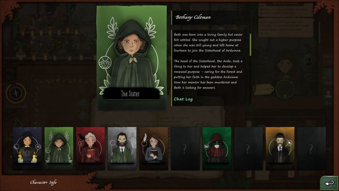 In real life, I am not good at plants, which is why the ones I have include traits like “handles neglect well”. But in this game, I am the expert that people come to for help. And it is so deliciouslymethodical, running Strange Horticulture. Someone will come forward and describe a problem. Then ask for a plant they’ve heard will help. You open your big book o' plants to find a description and sketch of it, and then peruse the rustling fellows on your shelf.