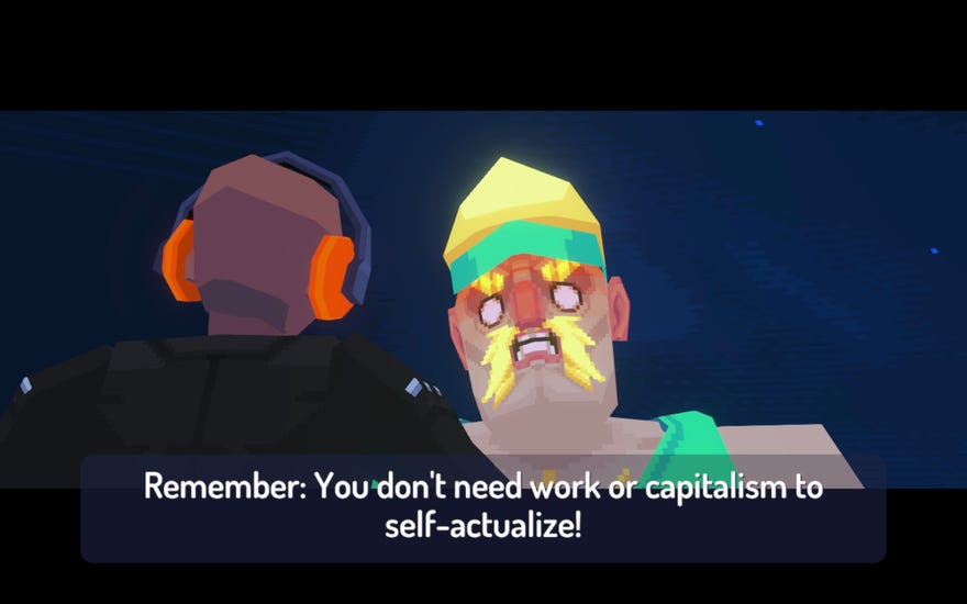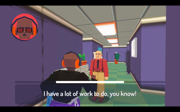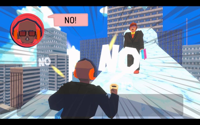 In Say No! More, which came outon Steama few weeks ago, you play an intern who cannot say no. Indeed, nobody can. It has been banned; it is a forbidden word in the huge office you now work in. But when you sit at your desk you discover a motivational casette tape, where a beefcake-meets-drill-sergeant man who sounds vaguely like Gilbert Gottfried teaches you how to say no. It is a very powerful word.