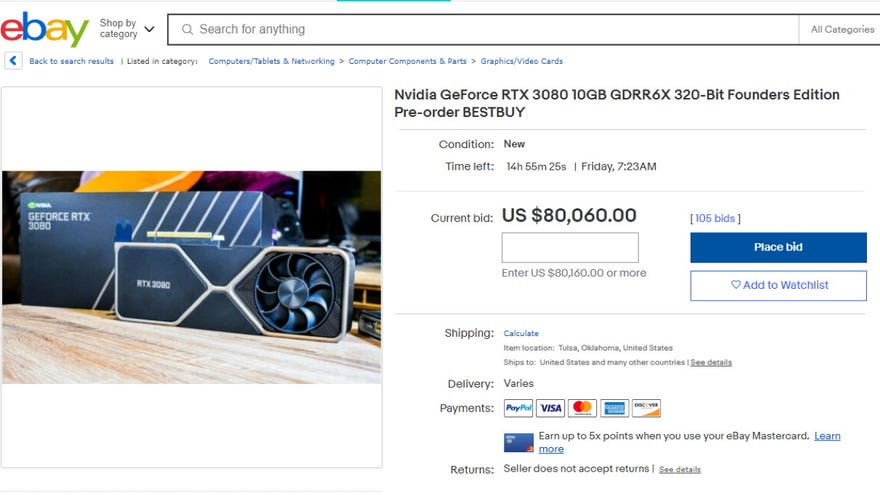 Some mad people are bidding over $80,000 for an RTX 3080 right nowAbsolute scenes