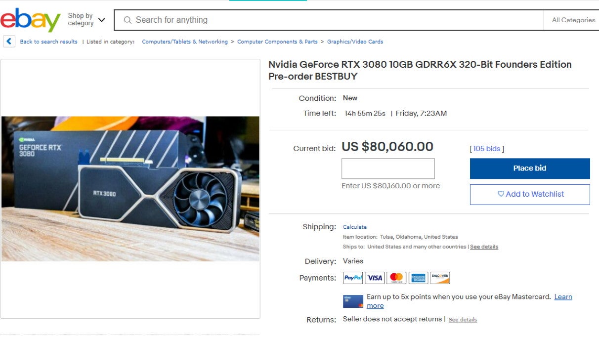 Some mad people are bidding over $80,000 for an RTX 3080 right nowAbsolute scenes