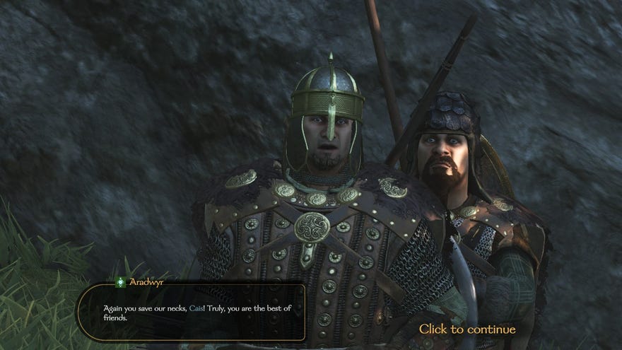 Who are you aga… I mean, YES HELLO DEAR FRIEND, HO HOThe fact that missile troops pick up loose ammo when they run out, and lancers will climb on spare horses. The player could always nick loose horses, and later versions of MnB let you pick up some dropped weapons and quivers (though they all disappeared after a battle), but being able to retrieve individual projectiles after they miss is great, and having the AI do it as well makes for some entertaining surprises. Flinging an axe into someone’s bits and then pulling it out and using it on someone else? Yes please.