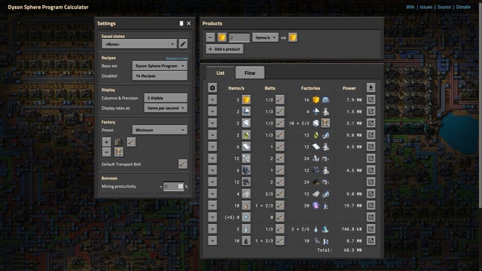 I’d love to say that it’s a close call, but at the moment the clear best Dyson Sphere Program Calculator is theFactorioLab Calculator for Dyson Sphere Program(pictured above). This offshoot of the Factorio Calculator has been quickly and very nearly perfectly set up with all the recipes and items for Dyson Sphere Program, and it works like a charm.