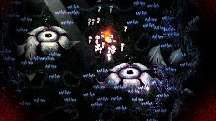 Daps are little mushroomy-spore creatures that say “dap!” or sometimes “dapdapdap” and they are both cute and unsettling. You speak to other Daps and convince them to follow you in a big group through a swampy forest that is dark and full of terrors. Some of those terrors are Daps that have been infected with bad spores, and they become very aggressive and sprint at you, shrieking, from the trees. Part action, part horror, all Dap. I do not like it. It is good.