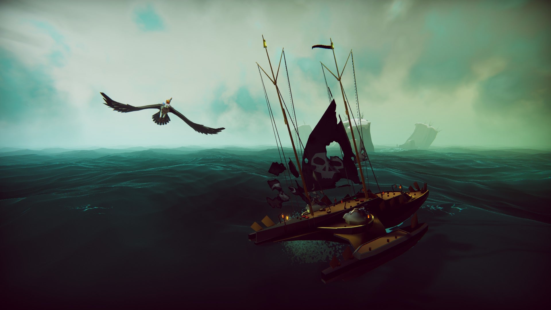 It’s an endlessly pretty game, for one thing. Even seen entirely from the air, its ocean is easily the most gorgeous I’ve seen outside of Sea Of Thieves. The range of colour and light you’ll see played out across its vast sky is wonderful, and I can think of no other game that’s had me periodically fly directly up, away from my troubles, just to break out above the clouds and hear the music gradually drop to a gentle windchime to accompany the starlight.