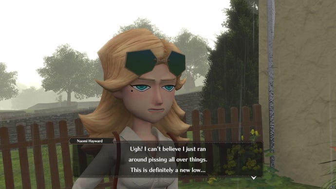 But for all of its delightful ideas The Good Life is a technical mess, and usually not an endearing one. The third-person camera swings drunkenly around above your character’s head like an attacking seagull. Naomi maneuvers like a barge. The cute, low-poly art style seen in the early trailers has come out looking all sickly and rotten, rigidly animated and lacking in any detail or lighting effects.