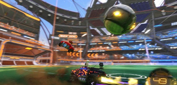 It is car soccer. And the easiest video game to describe to your pals. Two to four players per team, each player in their own toylike rocket car, hoofing a ball around a stadium encased in transparent walls. The goal is goals. Rocket League is fun from the first minute. You can boost your car with a tank of refillable rocket juice, ping the ball with stylish flips, and soar through the air like an ascendant eagle looking for a header. There are plenty of skilled players out there (not to mention a lot of people passive-aggressively spamming the quickchat dialogue - “Wow! Nice save! Wow!"). But play with friends and it becomes the perfect waste of time. An idle kickabout for the modern world.