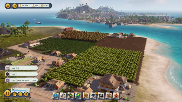Thankfully, Pirate Cove inherits the silly, self-aware tone of the original, taking the edge off your entire economy being built on slavery, and your captives are all European nationals, which, well. It’s obviously ahistorical, but at least feels much less uncomfortable than playing a real life plantation boss. You’re definitely the baddies, but moustache twirling baddies with scurvy and a parrot.