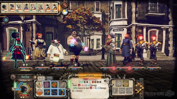 Instead of commanding a group of rugged, blood-soaked mercenaries on a turn-based death crawl through unimaginable horrors, how about a neo-Victorian circus troupe brawling with biomechatronic Londoners? That’sCircus Electrique, a turn-based RPG that’s much more lighthearted than itsDarkest Dungeoncounterpart (and seemingly main inspiration). But after playing a preview of the game’s first mission, there’s more than meets the eye in this part steampunk RPG, part circus tycoon management sim.